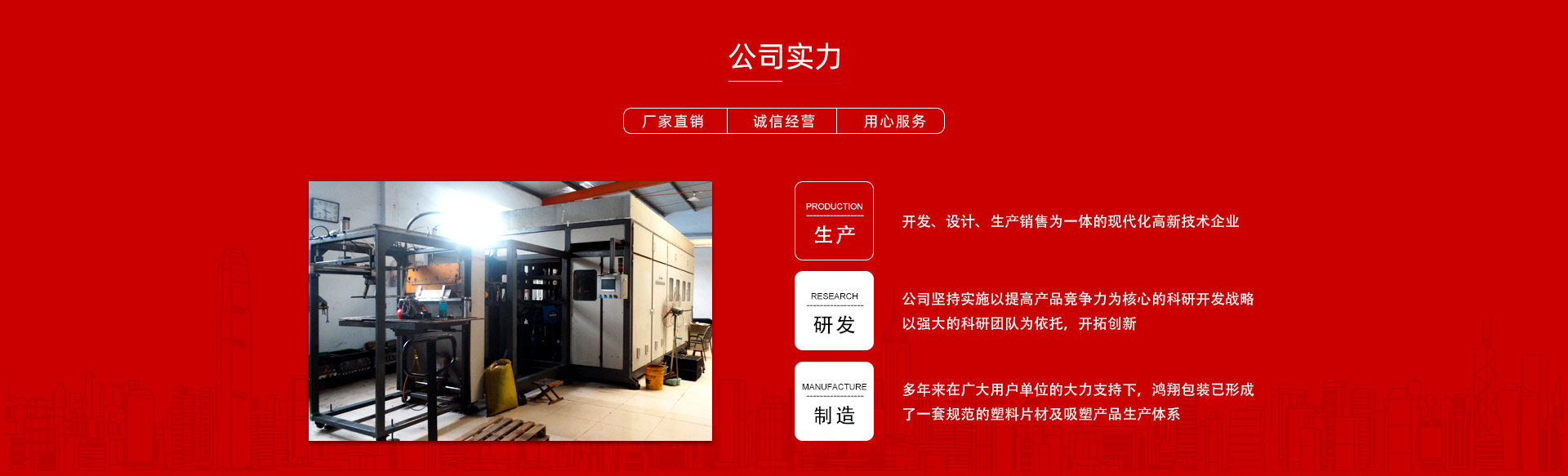 平原縣鴻翔包裝制品有限公司是一家大型生產塑料片材及吸塑產品企業(yè),本公司投資引進電腦自動塑料氣壓成型機,壓片機,全自動高速吸塑機,率先開發(fā)生產PVC片材,PET片材,PS片材,PP片材等,鴻翔是國內先進的生產廠家之一。本公司產品廣泛應用于醫(yī)藥、食品、化妝品、日用品、農業(yè)、五金、電子元件、工藝品等行業(yè),也可根據(jù)客戶需求自行設計制作模具。本公司技術力量雄厚,生產設備工藝先進。我們秉承用戶至上的經營宗旨,竭誠為您服務。